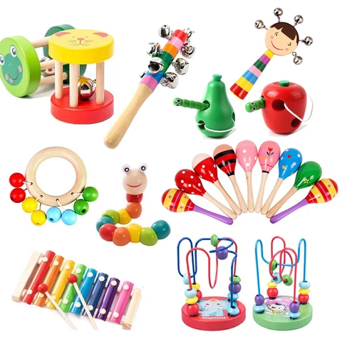 Baby Toys Montessori Wooden Rattles Sand Hammer Enlightenment Wooden Blocks Puzzle Game Development Baby Toys 0 12 Months
