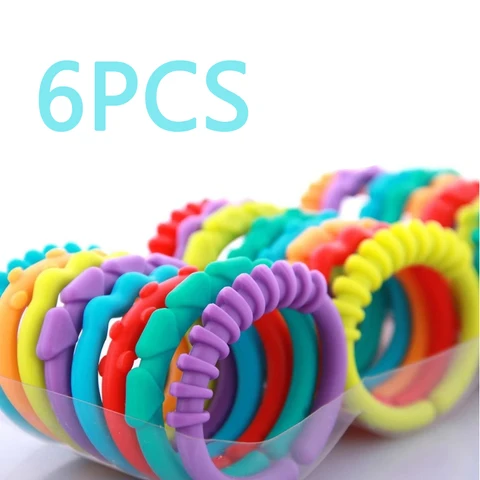 6pcs/Set Cute Colorful Rainbow Rings Baby Teether Toy Crib Bed Stroller Hanging Rattles Grasping sensoriel Toy Educational Gift
