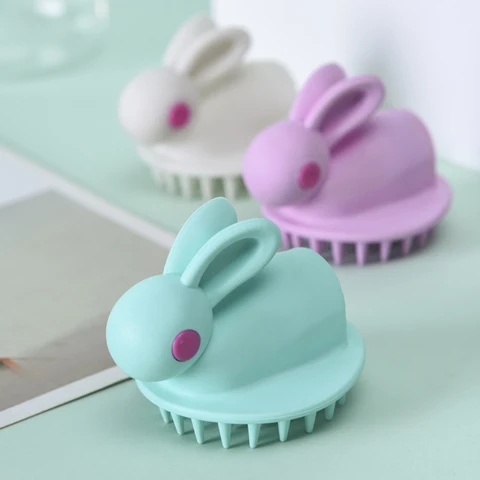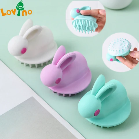 Baby Silicone Shampoo Scalp Hair Massager Cartoon Rabbit Head Body Bath Spa Brush Kids Hair Washing Soft Tooth Comb Shower Brush