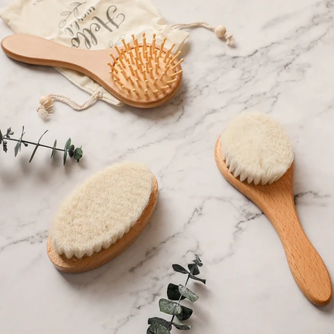 New Baby Care Pure Natural Wool Baby Wooden Brush Comb Brush Baby Hairbrush Newborn Hair Brush Infant Comb Head Massager