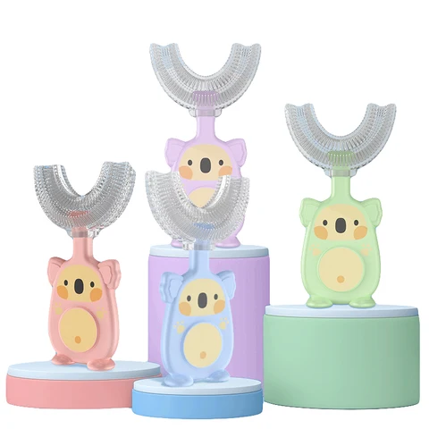 Baby Toothbrush 360 Degree U-Shaped Cartoon Toothbrush Infant Teether Children Silicone Brush for Toddlers Oral Care Cleaning