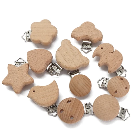 Chenkai 50PCS Wooden Bear Flower Car Heart Bird Elephant Round Star Clips BPA Free For DIY Baby Nature Pacifier Chain Gifts