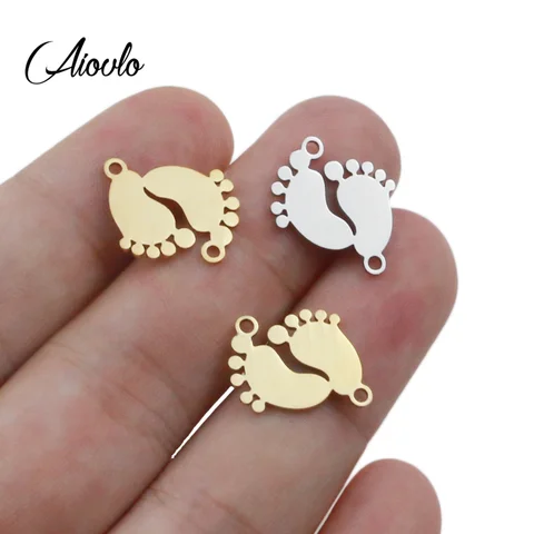 Aiovlo 5pcs/lot Stainless Steel Charm Pendants Cute Lovely Baby Feet DIY Metal Bracelet Necklace Jewelry Findings Accessories