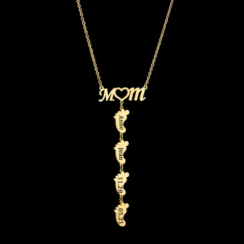 Personalized Mama Letter Engrave Name Date Customized Nameplate Mom Necklace Stainless Steel Baby Feet Jewelry Birthday Gift