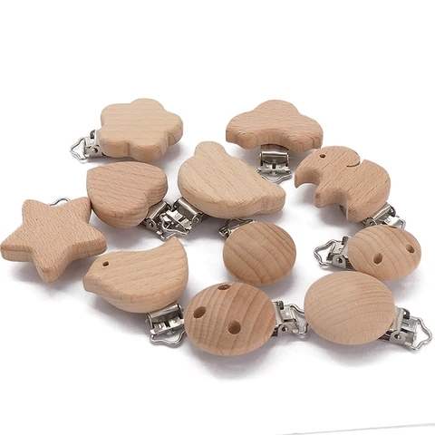 Chenkai 50PCS Wooden Bear Flower Car Heart Bird Elephant Round Star Clips BPA Free For DIY Baby Nature Pacifier Chain Gifts