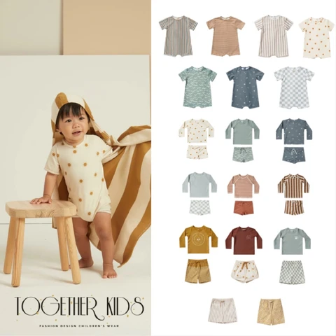 2023 New RC Baby Boys Swimwears Summer Kids Simple Floral Striped Pattern Bathing Suits Toddler Girls Printed Swimming Hot 1-12Y