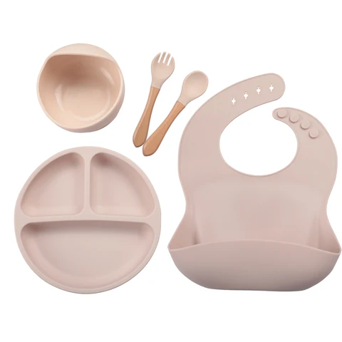 9/6/5/4PC Silicone Baby Bowl+Suction Plate+Straw Cup+Waterproof Bib+Spoon Fork Silicone Baby Tableware Set Kids Feeding Dishes