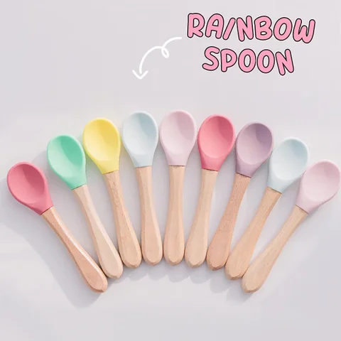 Baby Wooden Spoon Silicone Baby Feeding Spoon Learn To Eat Children's Tableware Toddlers Infant Feeding Accessories Utensils