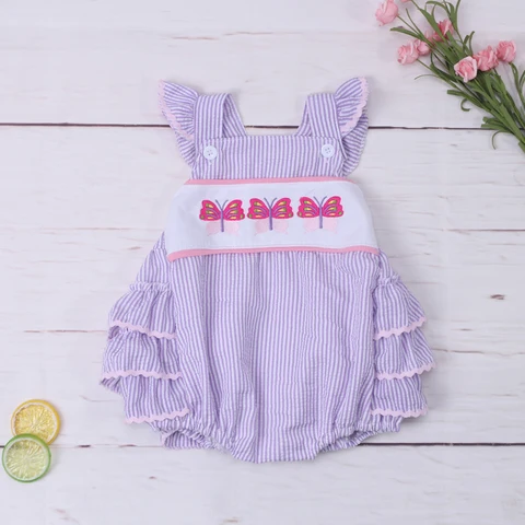 0-3T Baby Bubble Girl Clothes Summer Slip Dress Romper Short Sleeve Orange Jumpsuit With Hand Embroiderey One-pieces Bodysuit