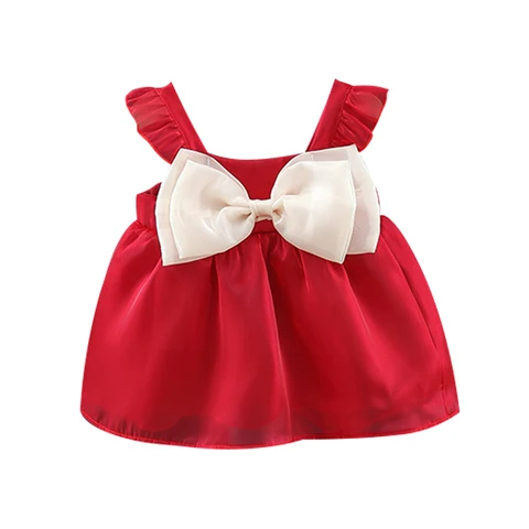 Baby Girls Dress Toddler Girl Clothes Set 2Pcs Baby Bowknot Ruffles Dresses Cute Sleeveless Cotton Newborn Princess Dress