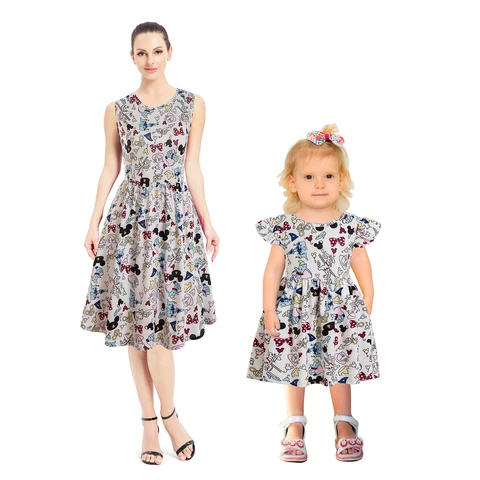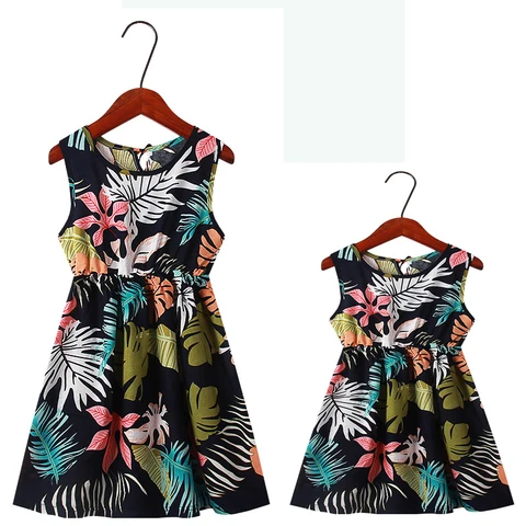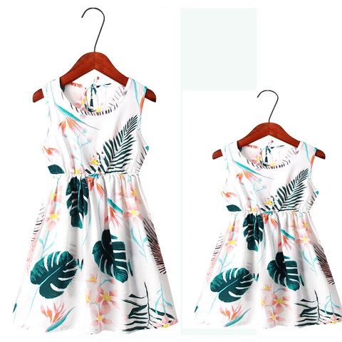 2021 New Summer Family Matching Dress Mom and Daughter Matching Clothes Sleeveless Girls Dresses Outfits Summer Clothes