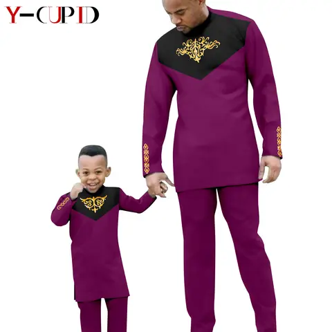 African Clothes for Men Top and Pants Sets Match Kids Boy Sets Dashiki Father and Son Suits Bazin Riche Family Outfits Y20F001