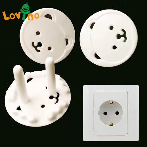 10 Pcs Baby Anti Electric Shock Plugs EU Electrical Outlet Protection Cover Baby Kids Electrical Safety Round Cute Bear Pattern