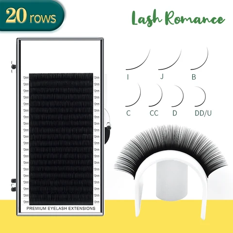 Lash Romance 20 Row Faux Lash Synthetic Mink Individual Eyelash Extension Dark Black Matte Soft Natural Eyelash Extension