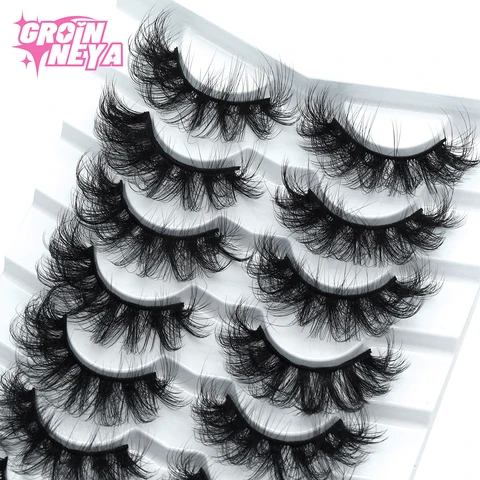 GROINNEYA False Eyelashes Cat-Eye Fluffy Faux Mink Lashes 8D Wispy Lashes 5/6 Pairs Pack Dramatic Long Thick Volume Eyelashes