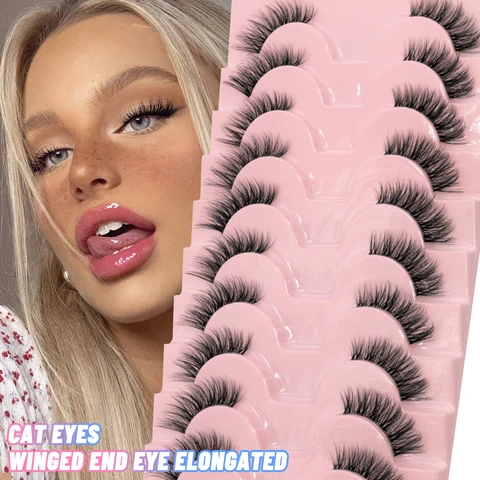 GROINNEYA Half Lashes 10pairs EyeLashes Mink Eyelashes Cat Eye Crisscross Transparent Band False Eyelashes Natural False Lashes