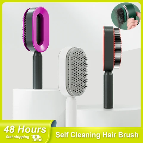 Self Cleaning Hair Brush for Women One-key Cleaning Hair Loss Airbag Massage Scalp Comb Anti-Static Hairbrush