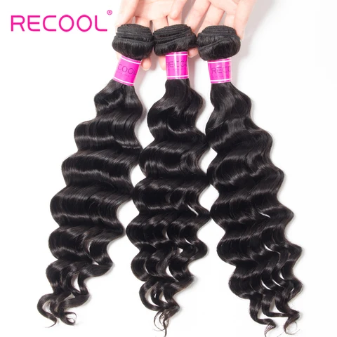 Recool Hair Loose Deep Brazilian Hair Weave 4 Bundles More Wave Natural Black Color Remy Hair Extension 100% Human Hair Bundles