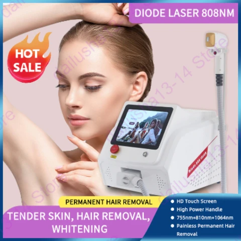808nm Diode Laser Hair Removal Machine Sapphire Contact Cooling Head Painless Laser 755 808 1064 Epilator