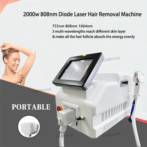 2023 Portable 2000W 808nm diode laser 755 808 1064nm wavelength freezing point painless permanent hair removal