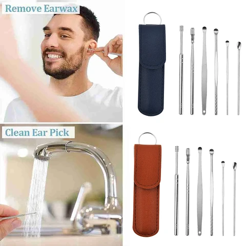 6pcs/set Ear Cleaner Wax Removal Stainless Steel Ear Wax Pickers Ear Cleaning Tools Spoon Earwax Remover Beauty Health Earpick