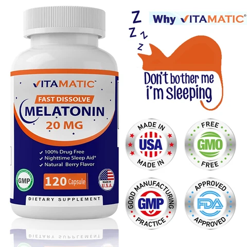 High Potency Melatonin 20 Mg Tablets | Vegan, Non-GMO, Gluten Free | Natural Berry Flavor Natural Sleep Aid