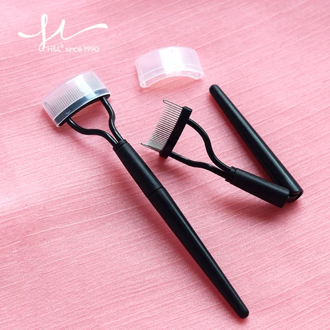 New Black Pink Eyelash Curler Metal Eyelash Brush Comb Portable Lash Separator Foldable Mascara Curl Beauty Makeup Cosmetic Tool
