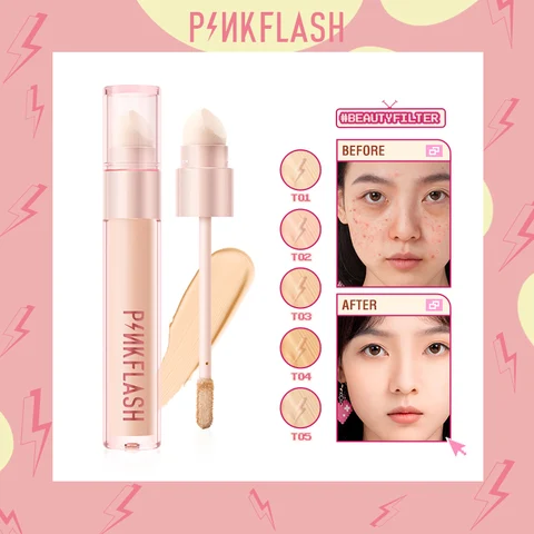 PINKFLASH HD Flawless Liquid Concealer Base Breathable Full Coverage Foundation Cream Cosmetic Suit for All Skin Face Makeup
