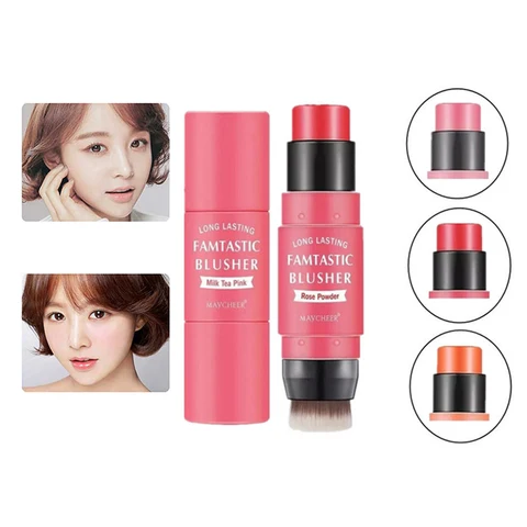 3 Colors Double End Blush Stick Moisturizing Waterproof blush Embellish contour Blending Blush Brush Long Lasting Blush Stick