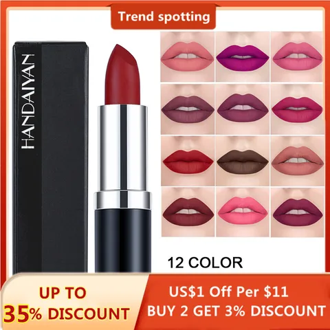 12 Colors Velvet Matte Lipstick Pencil Waterproof Long Lasting Sexy Red Lip Stick Non-Stick Cup Makeup Lip Tint Cosmetic beauty