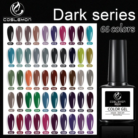 COSLEMON 8ml Dark Color Nail Gel Semi Permanent Gel Polish UV LED Polygel Nail Gel Varnish Soak Off Nail Art Gel Nail Polish