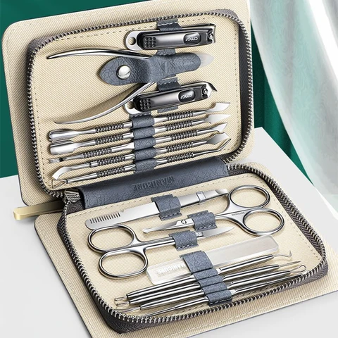Manicure Set 16 In 1 Full Function Kit Professional Stainless Steel Pedicure Sets With Leather Portable Case Idea Gift
