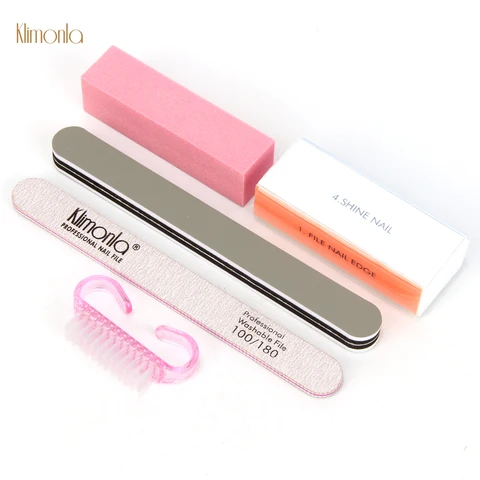 5Pcs/set Nail Art Tools Manicure UV Gel Nail Set Pink Cleaning Brush Four-steps Sanding Buffer Block Gray Nails Files 100/180