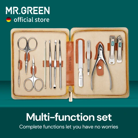 MR.GREEN Manicure Set 12 In 1 Full Function Kit Professional Stainless Steel Pedicure Sets With Leather Portable Case Idea Gift