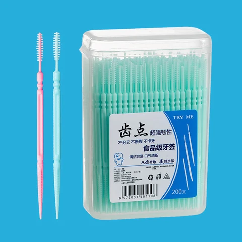 200Pcs Double-headed Disposable Dental Flosser Interdental Brush Teeth Stick Toothpicks Floss Pick Oral Gum Teeth Cleaning Care