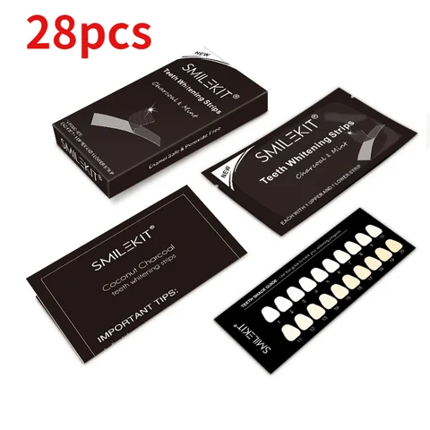 28pcs/box Teeth Whitening Strips Charcoal Tooth Stain Removal Oral Hygiene Care Dental Shade Bleaching Kit Enamel White Tool