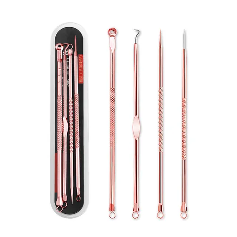 Rose Gold 4pcs/set Blackhead Comedone Acne Pimple Belmish Extractor Vacuum Blackhead Remover Tool Spoon for Face Skin Care Tool