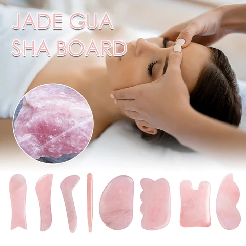 Natural Massage Jade Roller Gua Sha Stone Board Rose Quartz Guasha Plate Massager Scrapers Tools For Face Eyes Neck Back Body