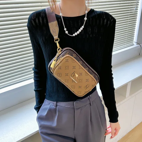 Vintage Shoulder Bag Women'S Printed Letter Crossbody Chest Bag With Adjustable Strap Designer Luxury Soft Leather Waist Packs