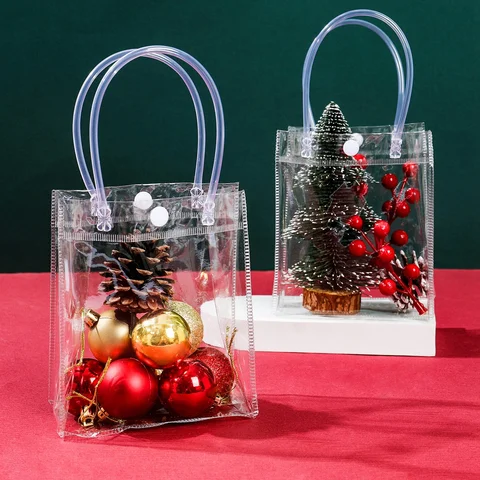 4pcs Transparent Tote bag Christmas Party Gifts Bag Wedding Birthday Party Decoration Candy Bags Kids Birthday Packing Bag