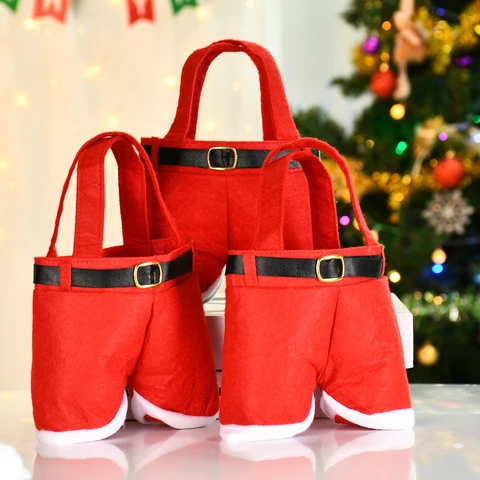 Christmas Candy Bags Creative Santa Red Pants Kid Gift Candy Gift Cookies Tote Stocking Filler Mini Treat Package Bag Wholesale
