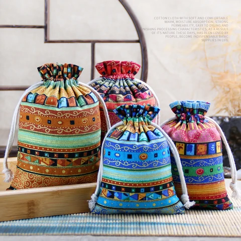 10pc Ethnic Trench Coat Pocket Drawstring Jewelry Bag Christmas Gifts Bag Flannelette Bag Jewelry Packaging Storage Bag