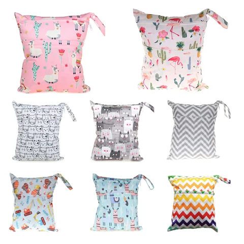 Printed Pocket Wet Bag Waterproof Reusable Nappy Bags Travel Baby Nappy Mini Size Wet Dry Bags Wet Bags 29x36cm Wholesale