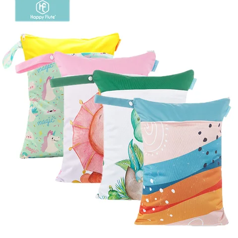 Happy Flute 1PC Reusable Waterproof Fashion Prints Wet Dry Diaper Bag Double Pocket Cloth Handle Wetbags 30*40CM Wholesale