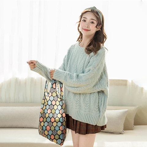 Portable folding shopping bag Lightweight Leaf pattern bag Foldable Waterproof ripstop Shoulder Bag Handbag