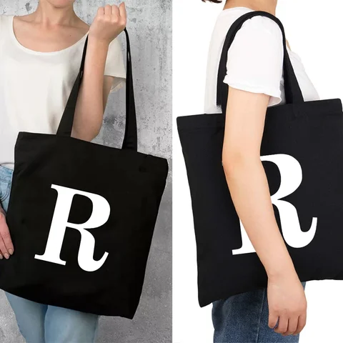 Women's Shopper Shopping Bags Shoulder Large Capacity 26 Letters Pattern Handbag Reusable Eco Canvas Grocery Tote Bag