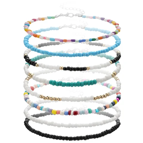 1 PC New Handmade Beaded Anklet Seed Bead Adjustable Colorful Ankle Bracelet On The Leg Foot Trendy Jewelry For Women Men 21.5cm