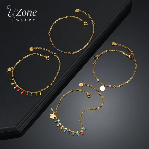 UZone New Gold Color Chain Ankle Bracelet On Leg Foot Jelwery Stainless Steel Adjustable Charm Anklet for Women Accessories Gift