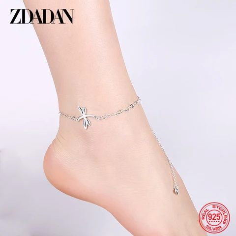 ZDADAN 925 Sterling Silver Dragonfly Adjustable Chain Anklet For Women Fashion Jewelry