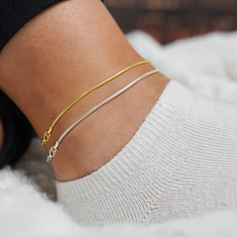 Thin Silver Gold Color Snake Chain Anklet Stainless Steel Adjustable Chain Ankle Gifts for Women Girls Leg Bracelet Jewelry Gift